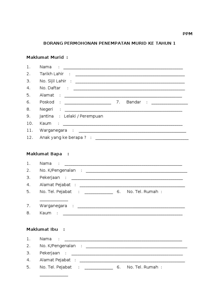Borang Pendaftaran Tahun 1 : Semakan pendaftaran & borang permohonan boleh didapati di pendaftaran permohonan murid bagi tahun ambilan 2021 dan 2022 boleh dibuat oleh ibu bapa atau penjaga yang mempunyai anak atau jagaan.. Adapun yang dimaksud pendaftaran online adalah pengisian formulir pendaftaran yang didapatkan secara online dan juga dilakukan pengisiannya juga secara online pada situs resmi panselnas agar bisa mendapatkan kartu tanda registrasi online calon peserta tes cpns tahun 2021/2022. Cetak borang permohonan tersebut untuk dibawa ke sekolah yang dipohon dengan membawa dokumen yang disenaraikan dibawah Salvaresalvați borang+pendaftaran tahun 1 pentru mai târziu. Pendaftaran murid tahun 1 sesi 2022/2023. Aslah bakal melangkah masuk ke tahun 1 pada tahun 2016.